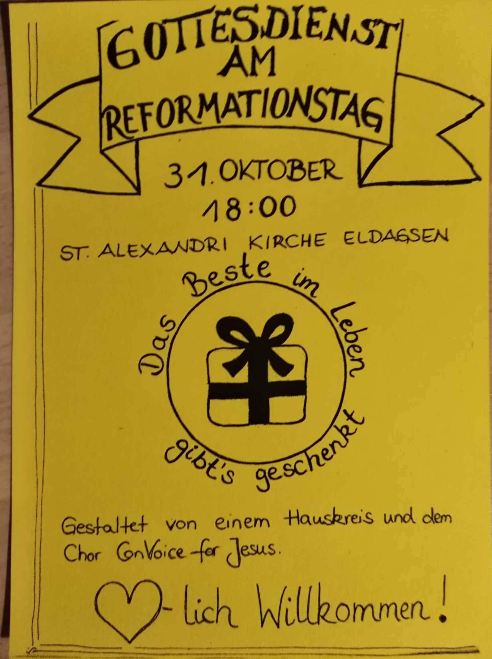 Der Gottesdienst am Reformationstag, 31.10. um 18:00 Uhr, wird von einem Hauskreis und dem Chor ConVoice for Jesus gestaltet.