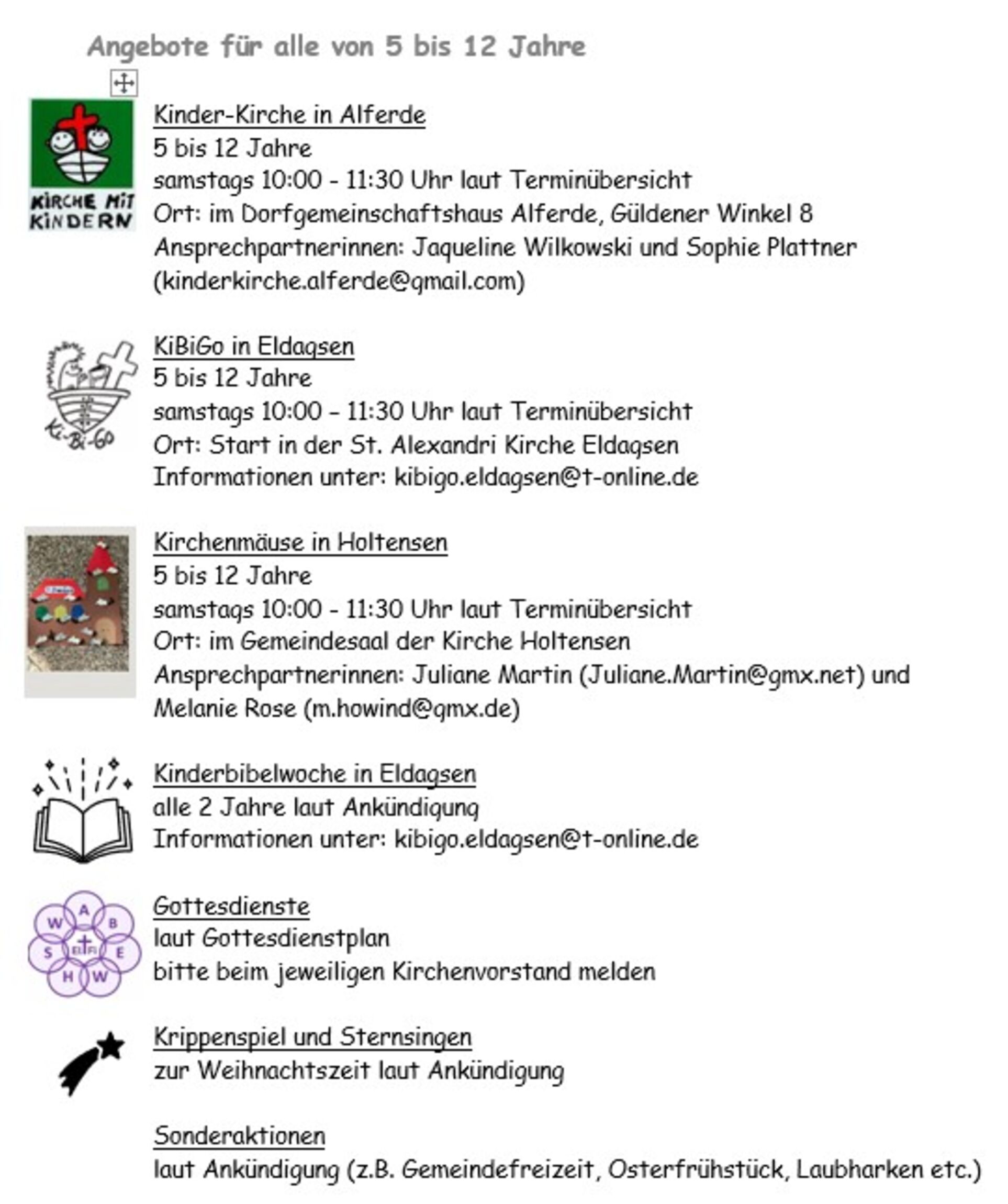 Die Gesamtkirchengemeinde Eldagsen und Finiendörfer setzt ein eigenes Konfirmationsunterrichtsmodell um. Die Konfirmandenzeit beginnt schon mit 5 Jahren und endet mit 14 Jahren.