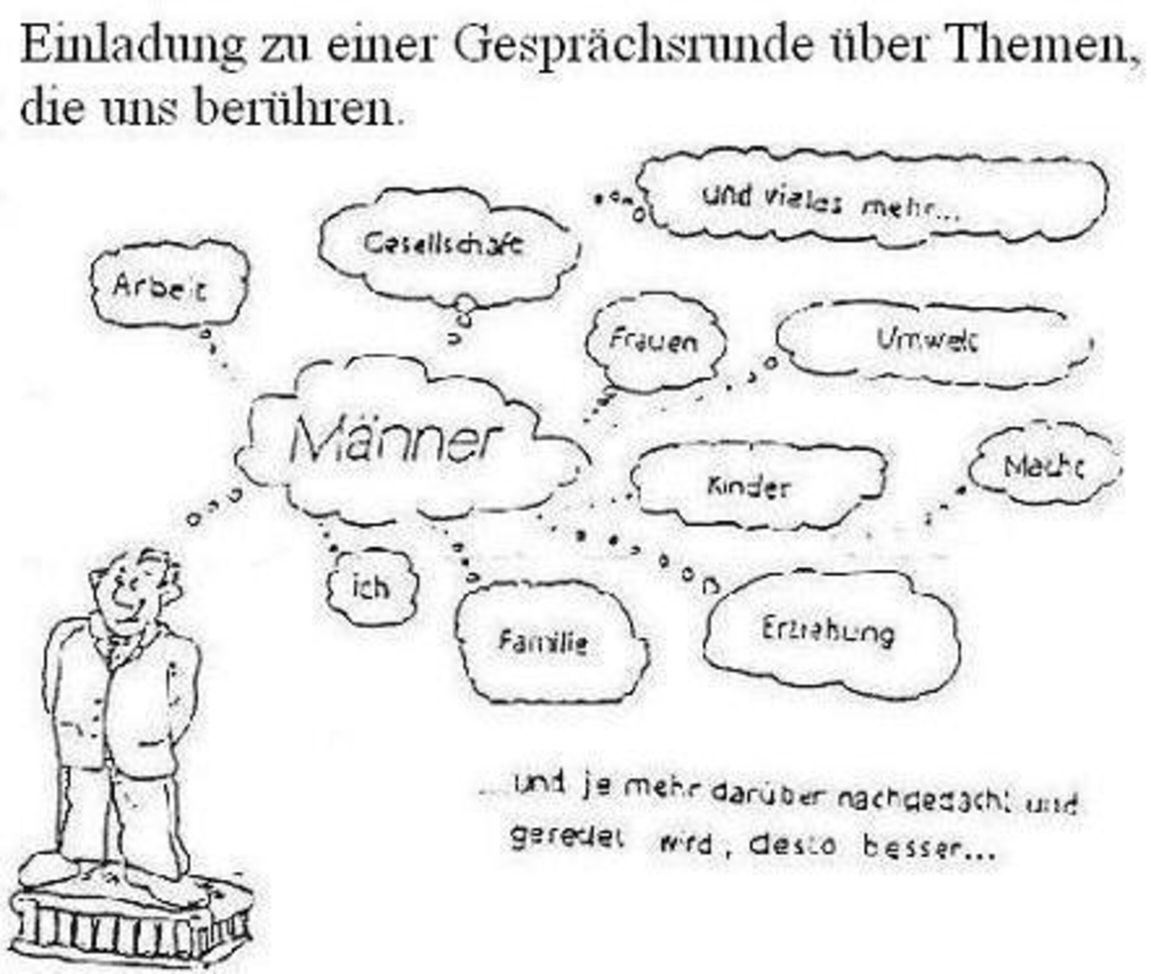 Die Männerrunde nimmt Themen zum Anlass, um in entspannter Atmosphäre zu diskutieren und zu plaudern.