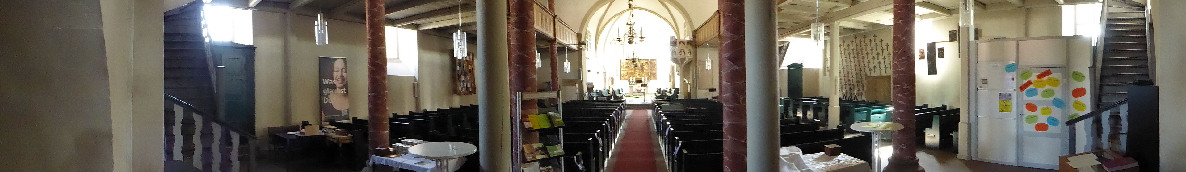 Wenn Sie die Einzelheiten betrachtet haben, sollten Sie sich noch einen Moment ins Kirchenschiff setzen, um in Ruhe den Gesamteindruck in sich aufzunehmen.